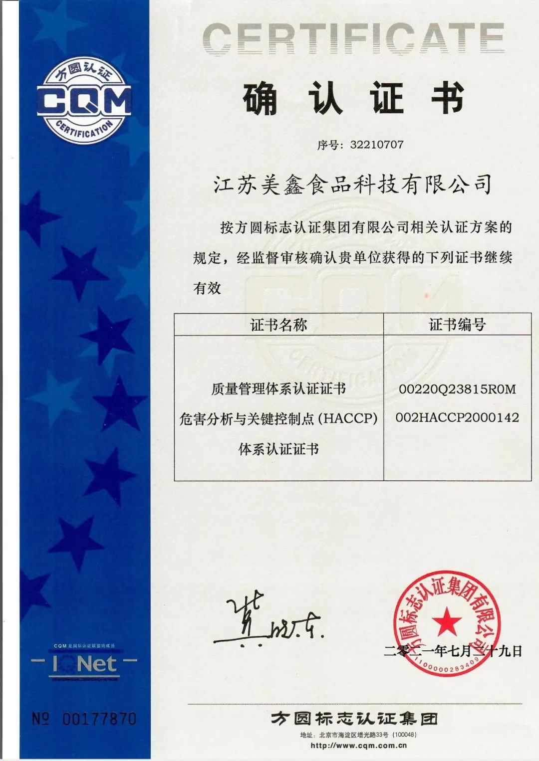 食品安全是我們的第一責(zé)任,從基地到餐桌把好每一道質(zhì)量關(guān),是我們義不容辭的責(zé)任與使命!美鑫食品旗下產(chǎn)品請(qǐng)您放心食用!