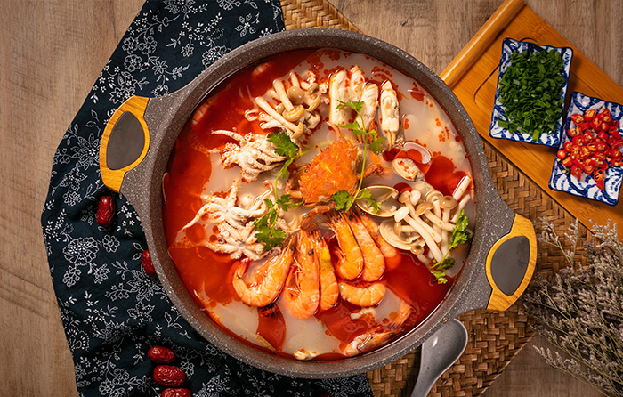 產(chǎn)品優(yōu)勢(shì):美鑫冬陰功湯底精選泰國(guó)鮮香茅、檸檬葉、香菜葉、紅辣椒和青檸檬等香料,經(jīng)過(guò)科學(xué)的配比構(gòu)筑湯的靈魂,鮮辣酸爽,湯汁濃郁,廚師可以任意搭配都不失平衡。